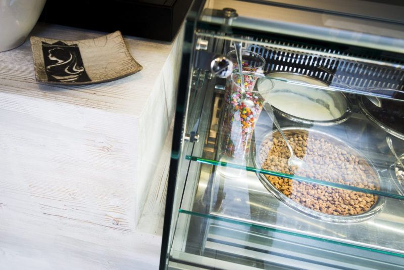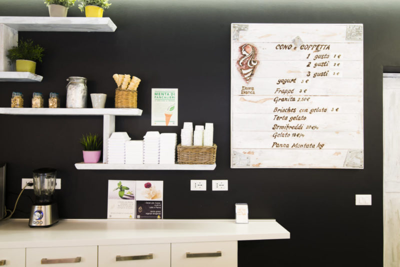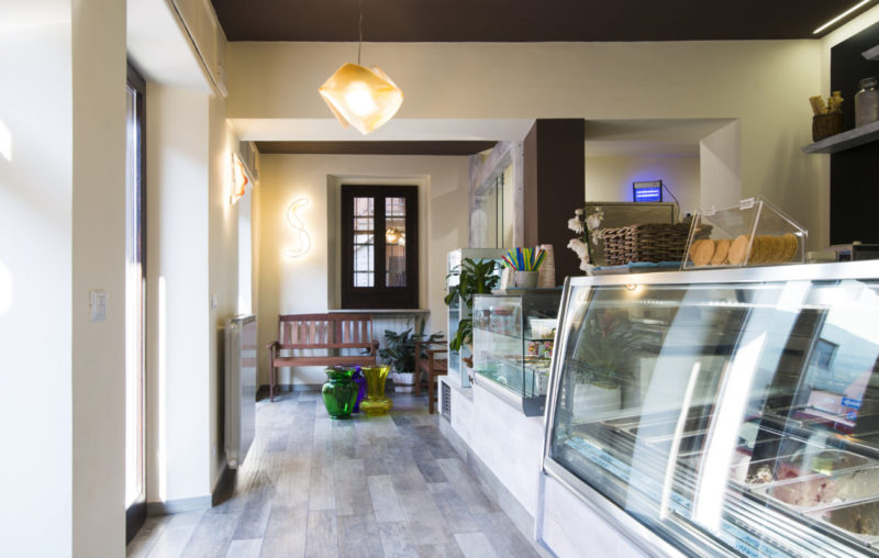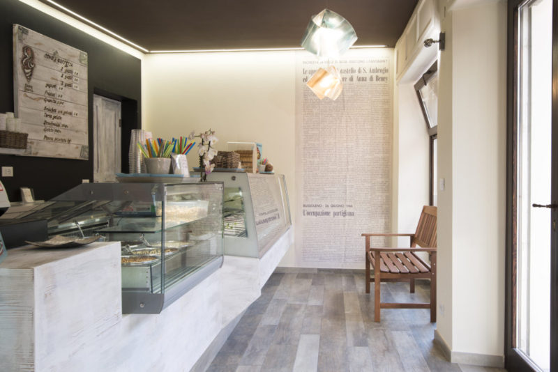 L’intervento in oggetto ha visto la realizzazione di una gelateria all’interno di un locale sito nel centro storico del Paese. L’allestimento interno è frutto di studi che consentissero il giusto equilibrio tra moderno e vintage. Le tonalità interne dei muri e del soffitto riprendono quelle del Logo rappresentativo della gelateria (anch’esso progettato dallo studio ArchIC). La parete principale nera, vuole riprendere i caratteri di una lavagna su cui annotare i vari tipi di gelato realizzati.